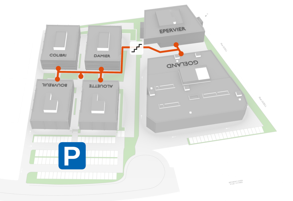 Flexible office spaces, coworking, 24/7 fitness room, equipped conference facilities, car and bike parking, on-demand service, and soft mobility.