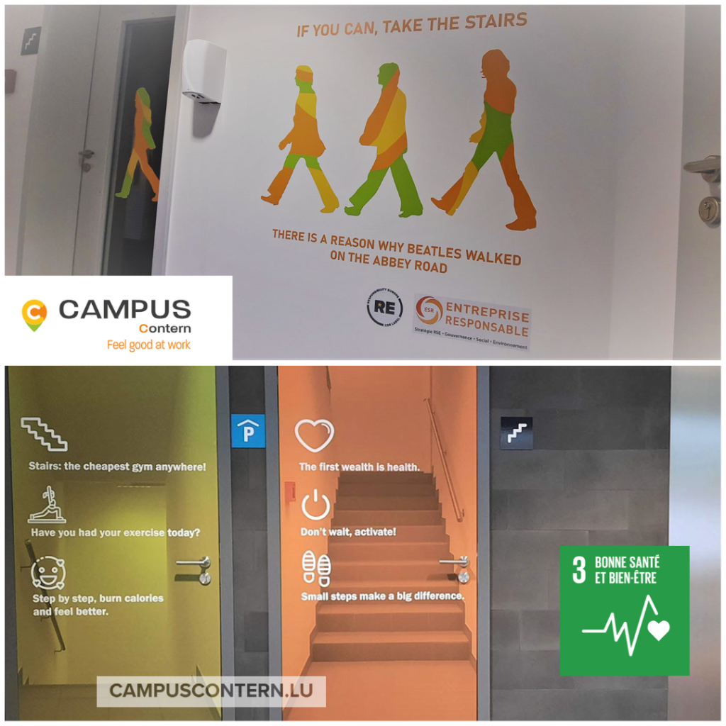 The doors and landings now feature encouraging and motivating messages because yes, #eatandmove is not a luxury or a myth—every small change and effort in daily life benefits everyone and the community.